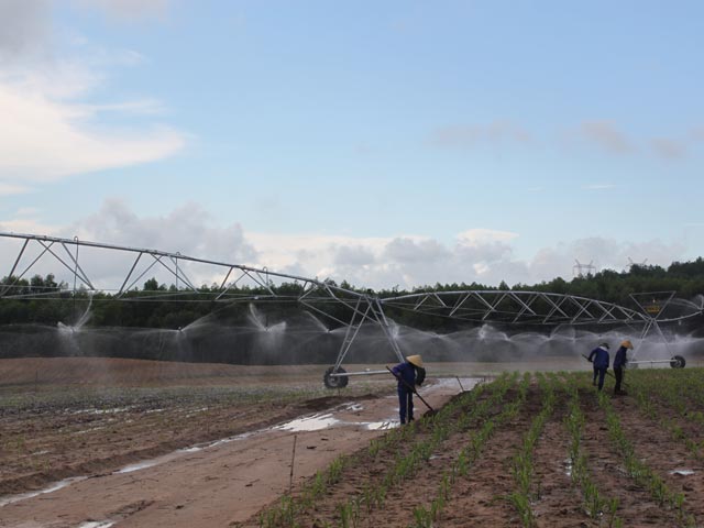 Đồng cỏ cho bò tại xã Cẩm Sơn (Cẩm Xuyên) được tưới bằng giàn tưới khổng lồ.
