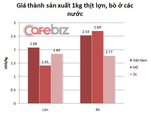 Giá thành sản xuất thịt bò ở Việt Nam hiện đang ở mức 200.000 đồng/kg, đắt hơn cả thịt bò Úc dù chất lượng không bằng. Theo tính toán, chi phí sản xuất thịt lợn của Việt Nam đang cao hơn cả thịt lợn Mỹ, chi phí sản xuất gà cao hơn gà Malaysia, Chile… - những nước thành viên trong TPP.